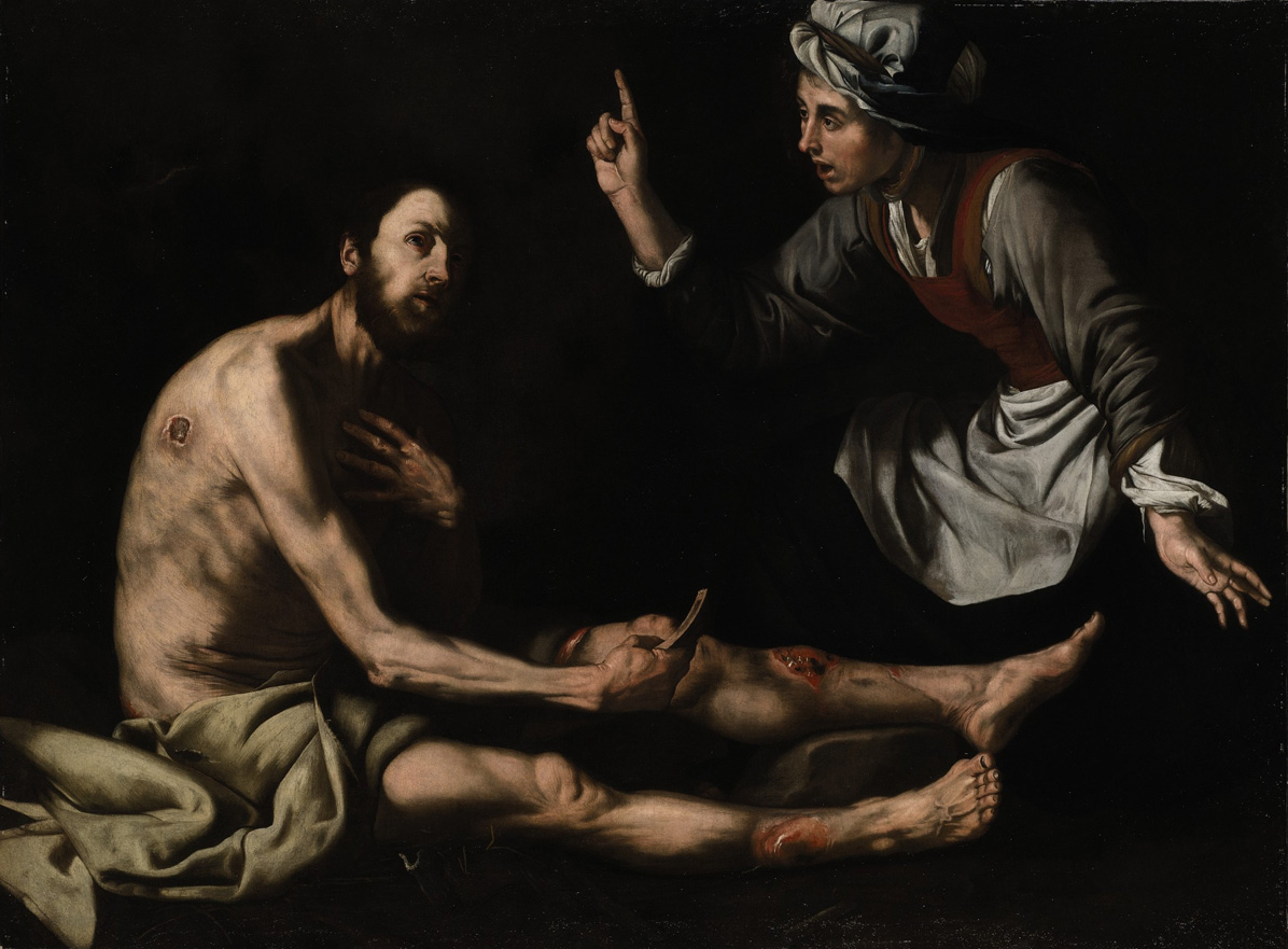 Job sur un tas de cendres. Guisepe de Ribera – 1630 . «Il y avait dans le pays d’Uts un homme qui s’appelait Job. Et cet homme était intègre et droit; il craignait Dieu, et se détournait du mal. Il avait sept fils et trois filles. Il possédait sept mille brebis, trois mille chameaux, cinq cents paires de bœufs, cinq cents ânesses, et un très grand nombre de serviteurs. Et cet homme était le plus considérable de tous les fils de l’Orient. (…). « Ce que j’ai crains, c’est ce qui m’est arrivé »