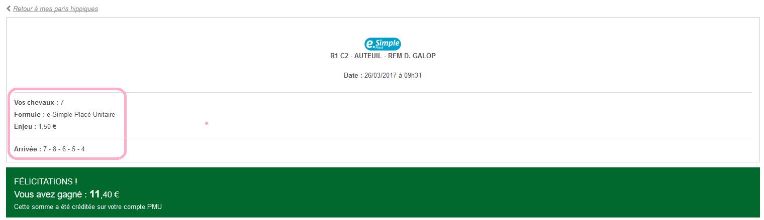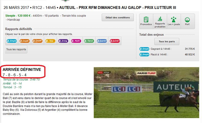 La côte n’était pas extraordinaire, et n’ai joué que 1.5€ gagnant, 1.5€ placé (alors que normalement je joue au moins 3€ gagnant), mais ai tout de même gagné 30€.