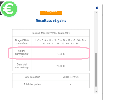 6 numéros sur 7, soit 70 €. 7 numéros sur 7 donnent 3000 €.